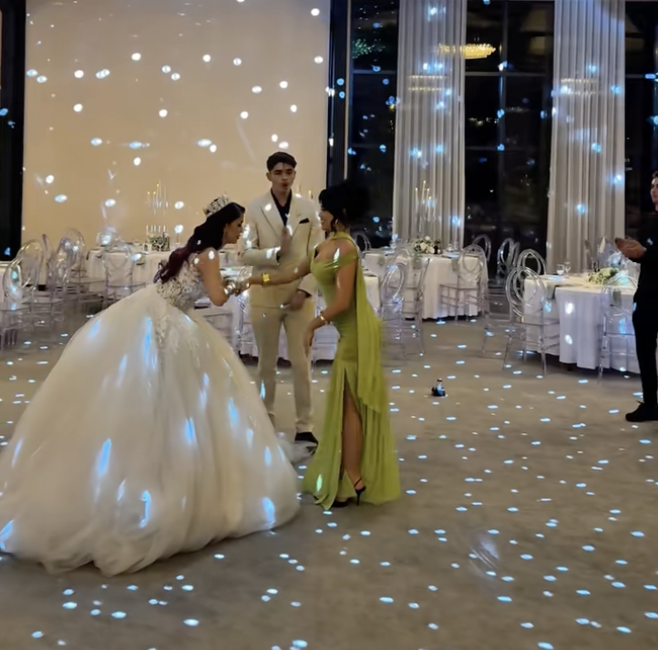 Anisa u kujdes që çdo detaj të dukej sa më real, duke përfshirë dekorime luksoze me lule, një fustan të bardhë nusërie si dhe vendi ku do “mbahej ceremonia e dasmës”.