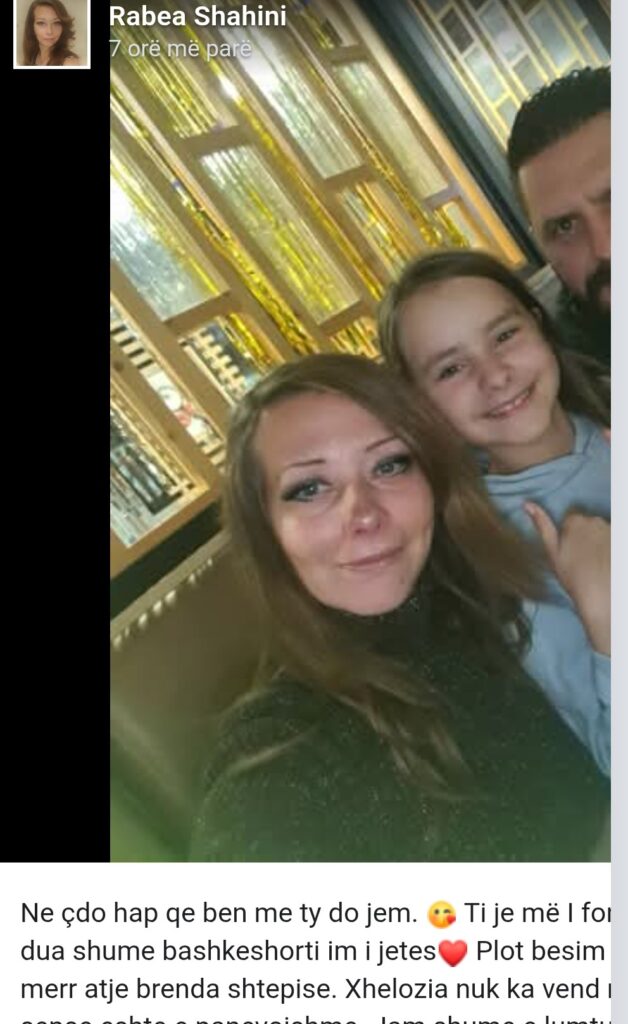 “Ne çdo hap qe ben me ty do jem. Ti je më I forti e BigBrother-it! Te dua shume bashkeshorti im i jetes Plot besim per çdo vendimin qe merr atje brenda shtepise. Xhelozia nuk ka vend ne martesen tone sepse eshte e panevojshme. Jam shume e lumtur me ty!”, shkruan Rabea krahas fotos ku shihen ai bashkëshortja dhe vajza e tyre.