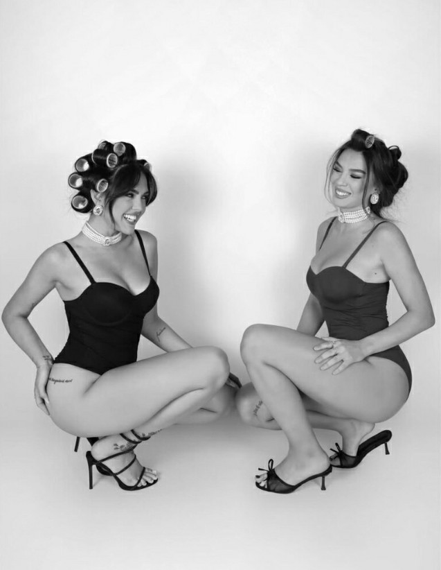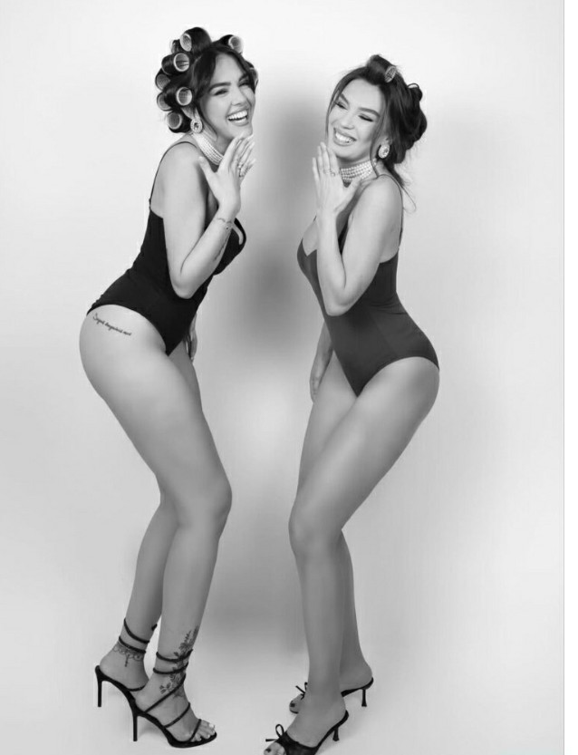 Në veshje intime të dyja u shfaqen të lumtura e përvëluese.
