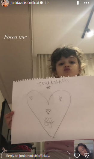 Vajza e saj, Ema, e cila po e ndjek nga shtëpia, i ka dërguar një mesazh të veçantë: një zemër të vizatuar me dorë ku shkruan “Të dua”.