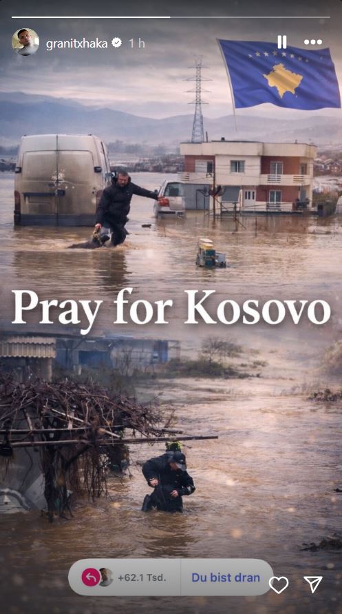 “Lutu për Kosovën”, shkroi futbollisti kosovar në Instastory derisa këtij shkrimi ia përcolli fotot me gjendjen aktuale alarmante në Kosovë