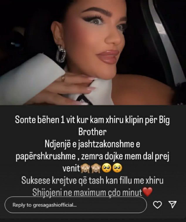 Ish-banorja e “BBVK” Gresë Gashi, është bërë nostalgjike për kohën kur nisi “Big Brother Vip Kosova”.