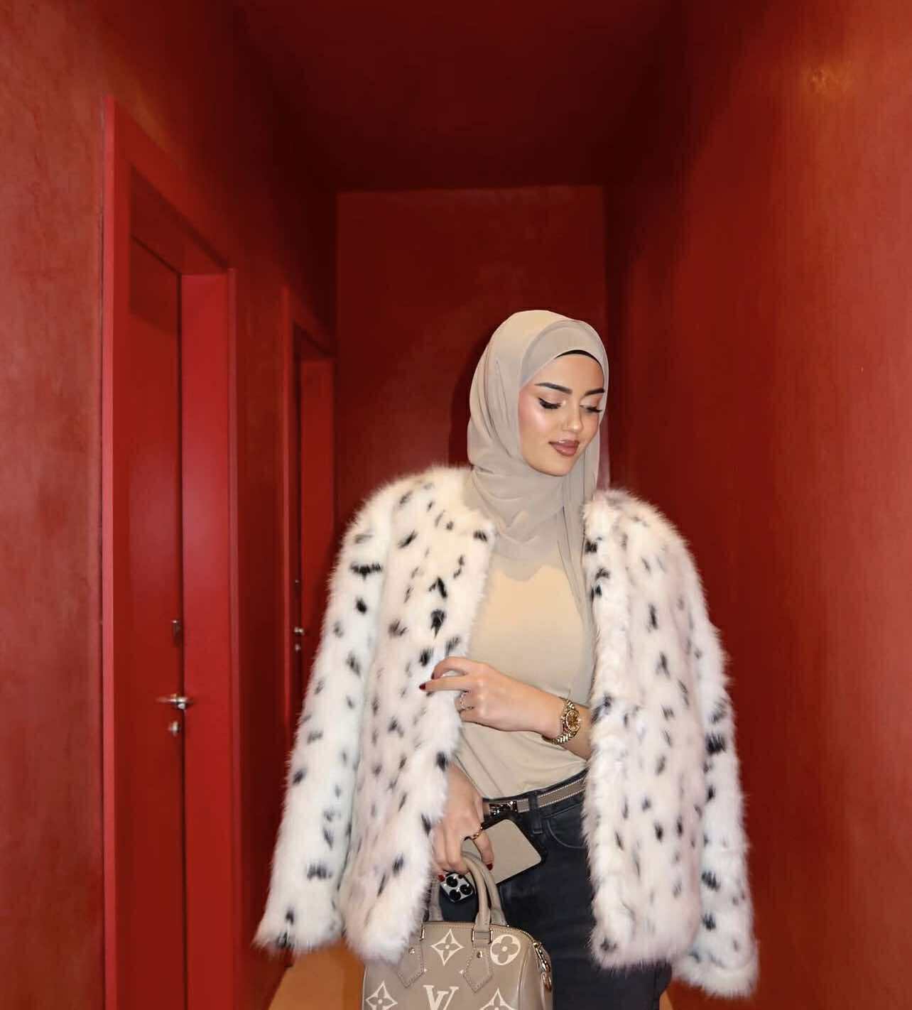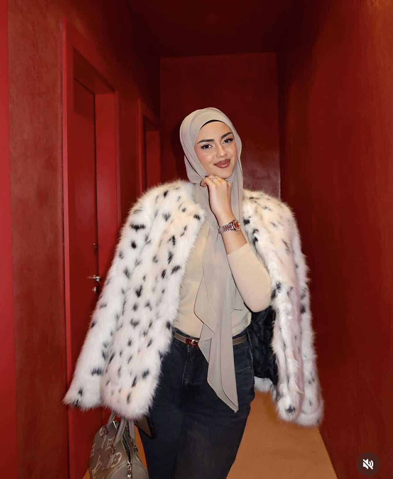 Në to, ajo shfaqet e veshur me stil dhe elegancë, duke reflektuar një imazh të sofistikuar të gruas myslimane.
