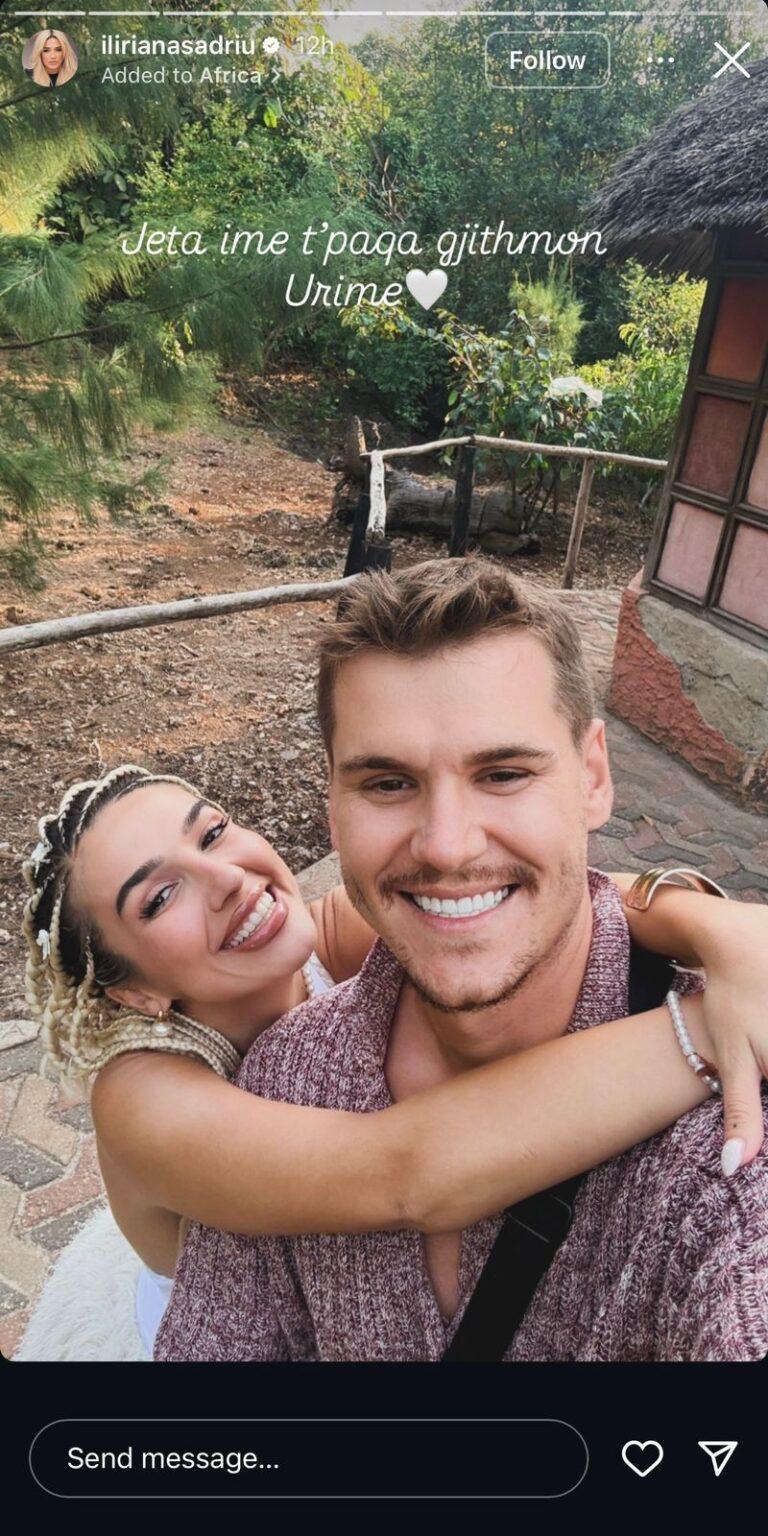 Në një postim të ndarë në Instagram Story, Iliriana ka publikuar një foto të bukur ku çifti shfaqet duke buzëqeshur, ndërsa krahas imazhit ka shkruar fjalët prekëse: