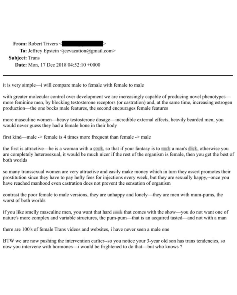 Një zhvillim që la pa fjalë disa aktivistë LGBT: Jeffrey Epstein diskutoi me biologë amerikanë në vitin 2018 për shtyrjen e ideologjisë transgjinore te të miturit për “kastrimin”, vite përpara se transgjinorizmi të glorifikohej gjerësisht në media.