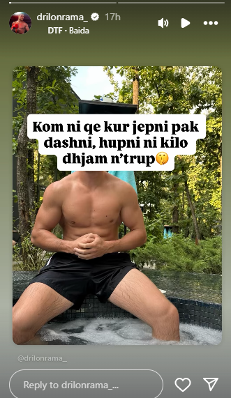 Ajo që tërhoqi vëmendjen ishte mbishkrimi krahas fotos, ku Driloni është shprehur “Kom ni që kur jepni pak dashni, hupni ni kilo dhjam n’trup.”