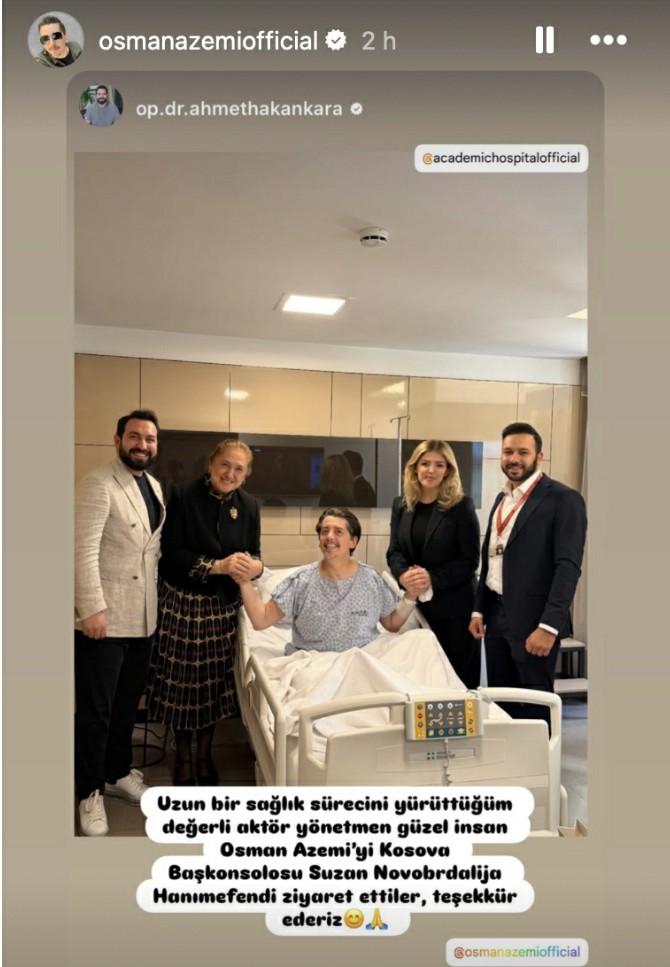 Ai ka ndarë me publikun një moment nga spitali, ku ai është vizituar nga Konsullja e Përgjithshme e Kosovës në Stamboll, Suzan Novobërdaliu, e shoqëruar nga stafi tjetër.