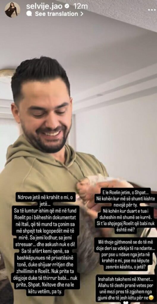 Sa të afërt kemi qenë, sa bashkëpunues ё privatësinë tonë, duke shijuar rritjen dhe zhvillimin e Roelit. Nuk prite ta dëgjoje duke të thirrur babi… nuk prite, Shpat. Nxitove dhe na le kétu vetëm, pa ty.”